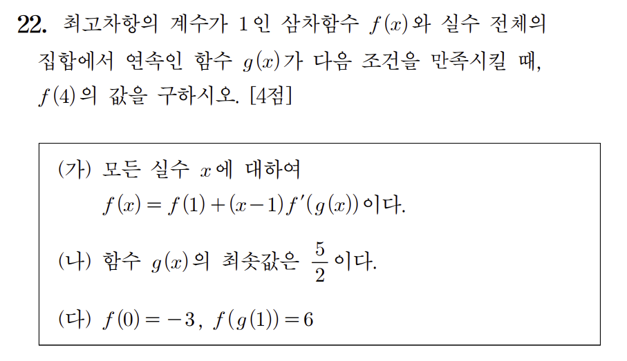 (다)조건을 활용하기 위해 g(1)을 구해보자